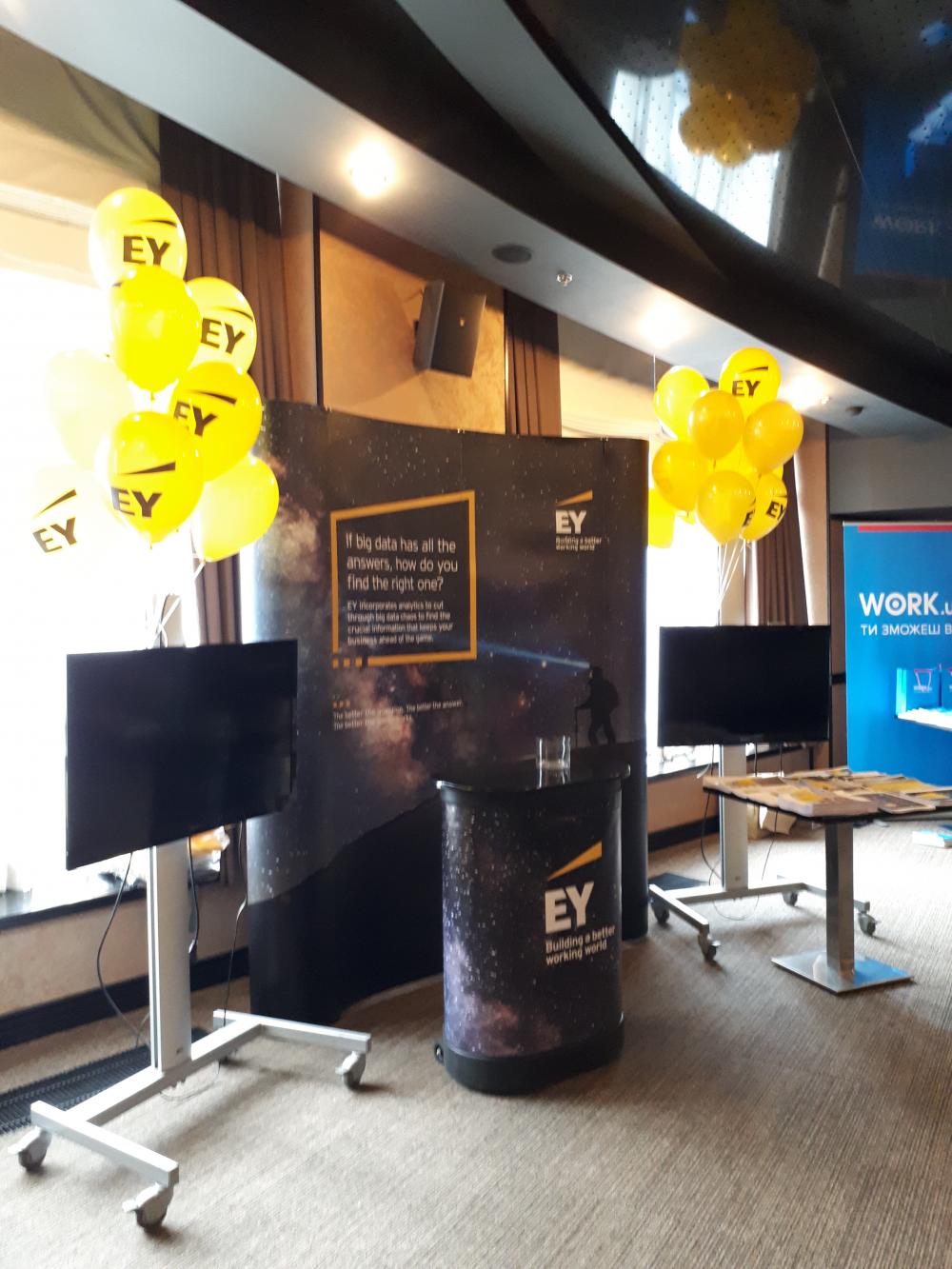 Проведені роботи: забезпечення івенту комплектом рекламних матеріалів (банерна конструкція, промо стіл, кульки з логотипом та реглани)